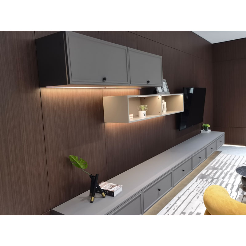 आम्ही तुमच्यासाठी सर्वोत्तम प्रकाराची शिफारस करतो. राखाडी टीव्ही वॉल युनिटसह एकत्रित व्हाईट कॅबिनेट स्टँड, हे सर्वात लोकप्रिय संयोजन आहे. याशिवाय, पीव्हीसी सामग्रीमध्ये चांगला आवाज शोषण प्रभाव असतो, सेवा आयुष्य वाढवण्यासाठी प्रभावीपणे कीटकांचा त्रास दूर करू शकतो. तसेच, SINOAH कॅबिनेटचा पृष्ठभाग रंगवू शकतो आणि सानुकूलित आकारासह स्लाइडिंग दरवाजे जोडू शकतो.
