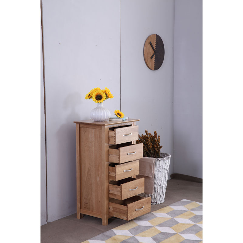 मॉडर्न ओक 5 ड्रॉवर कॅबिनेट