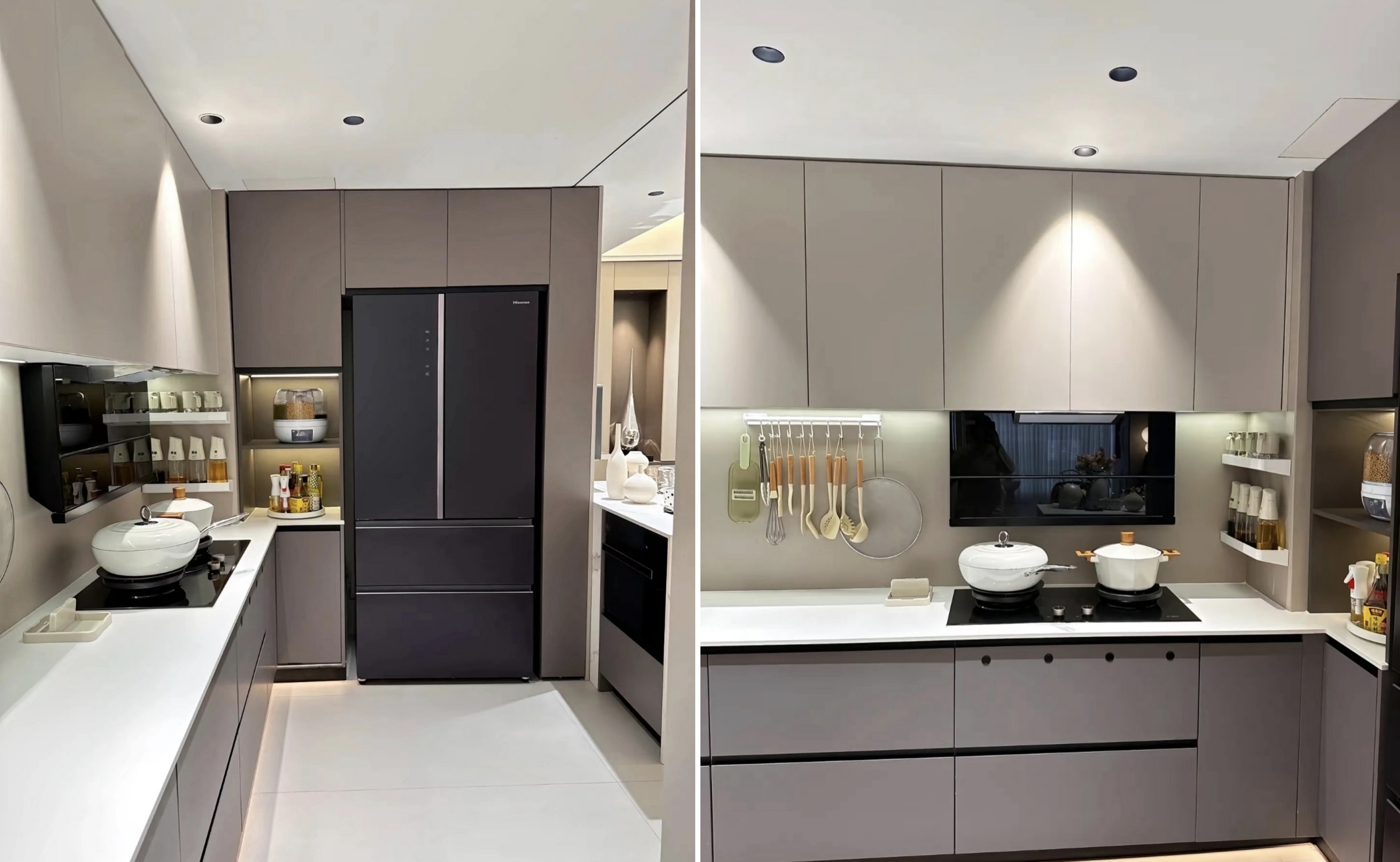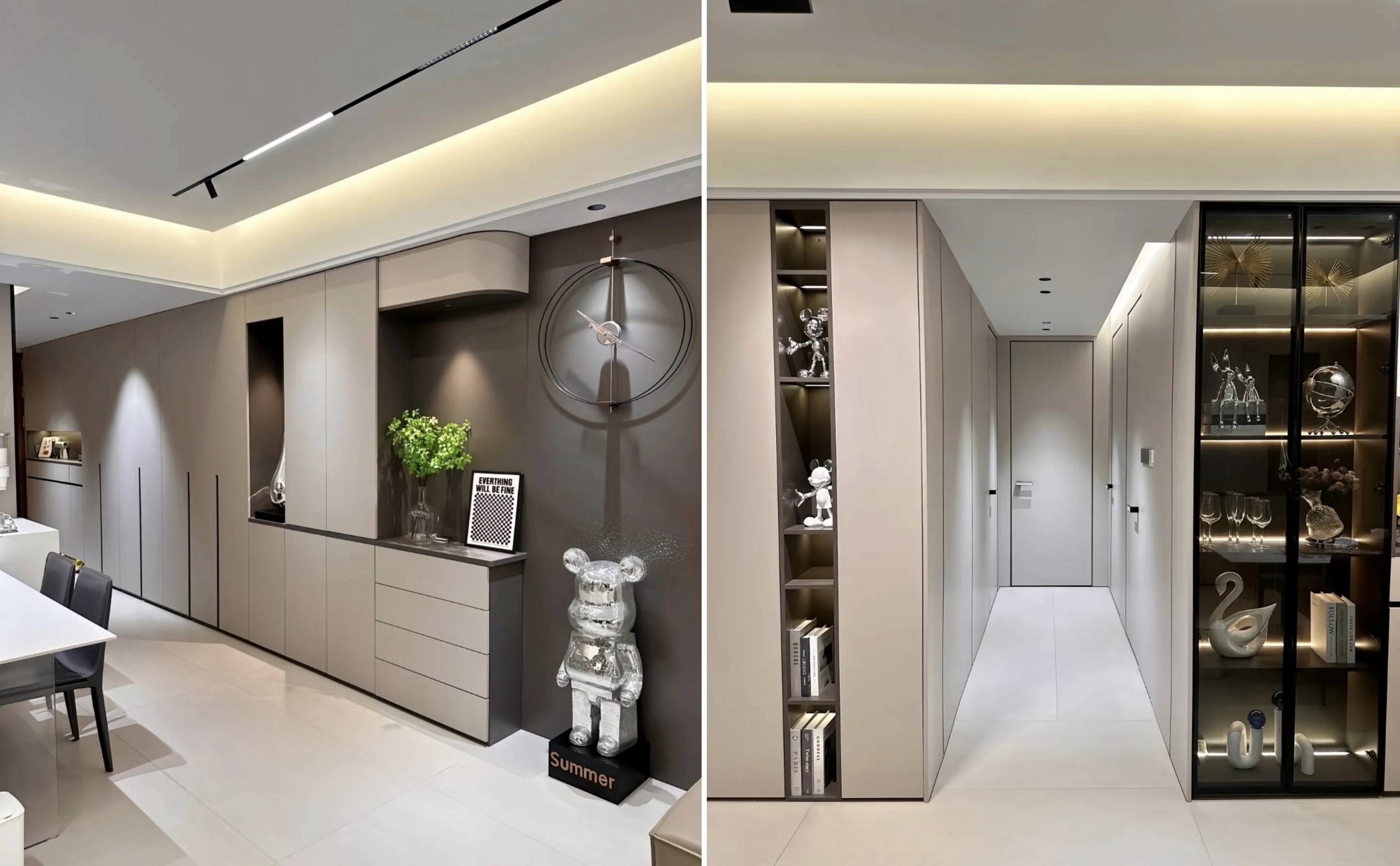 4. कॅबिनेट व्यतिरिक्त, इतर भिंती अधिक समन्वयित एकूण परिणामासाठी कॅबिनेटच्या दाराप्रमाणे त्याच रंगात भिंत पॅनेल वापरतात.